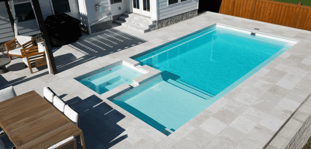 The Intrigue Fiberglass Pool Innovation meets relaxation in The Intrigue fiberglass pool, uniting a built in spa, a sun friendly […]