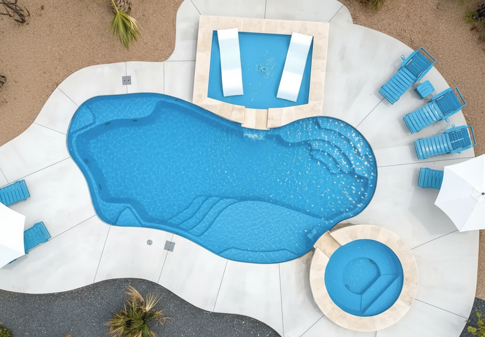 Natural-toned gelcoat with deep blue, bronze, and silver sparkles inspired by East Africa’s vibrant beaches. Its subtle shimmer blends perfectly with any backyard paradise.