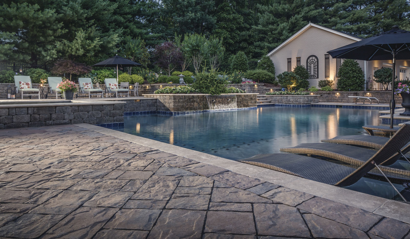 Unwind with gentle jets or flowing water. Water features bring beauty and calm to your pool.