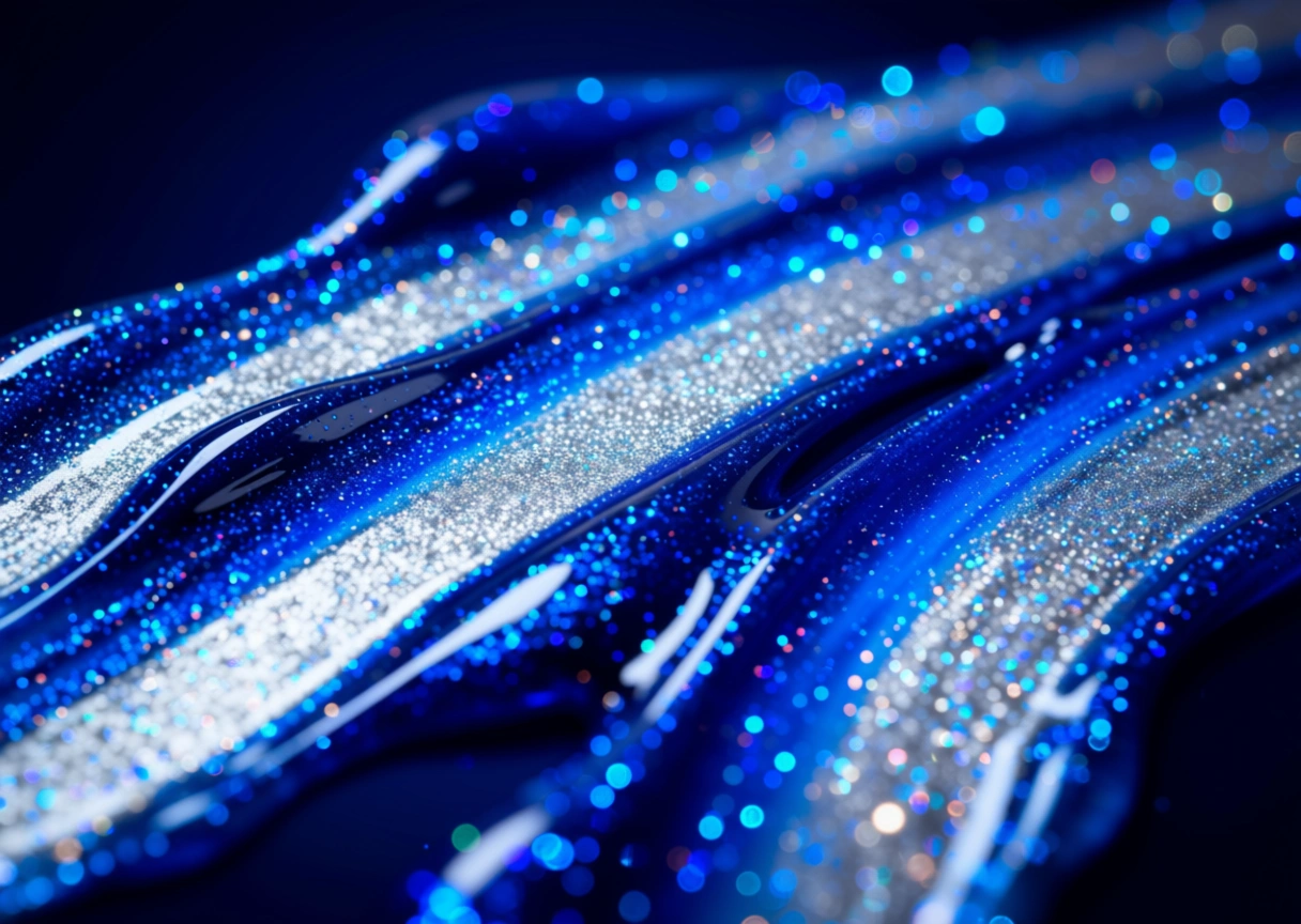 Bright blue gelcoat bursting with royal blue, aquamarine, and silver sparkles. Inspired by the Indian Ocean islands, it brings a tropical, sunlit energy to every swim.